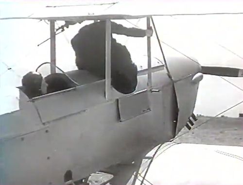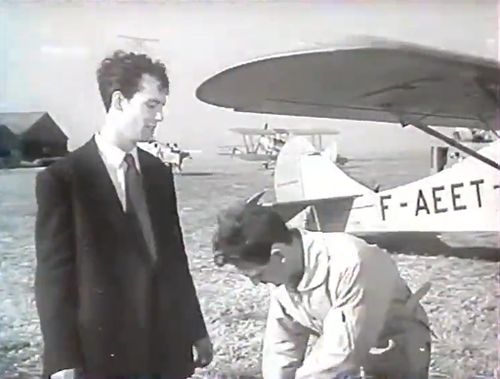 On the ground, the editor filmed a Caudron Luciole (see above) but once in the air, Léno is in the rear seat of a De Havilland DH.82 Tiger Moth.