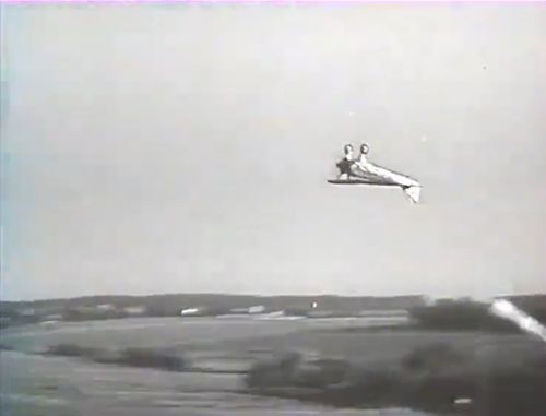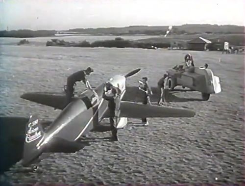 Archive footage of Hélène Boucher (or Maurice Arnoux) taking off at the controls of the Caudron C.450 Rafale.