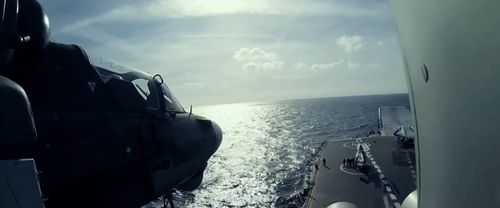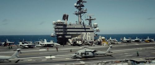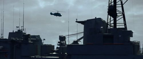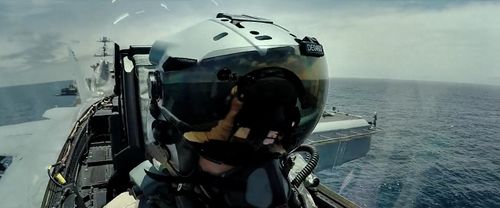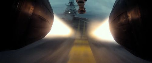 Continuity error seen amist U.S. Navy fleet's activation : Sukhoi Su-33 launch from the Admiral Kuznetsov's sky-jump (castle seen in the the background).