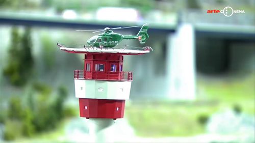 Our world filmed like a miniature world. Shots are mixed with scenes from transport modelling. Where is the frontier ?