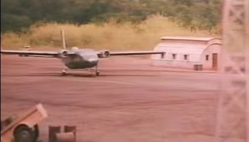 But during the takeoff, it's a radio command model which is filmed. This model is closer to a Kokusai Ki-59 with its rounded fuselage, air-cooled six-cylinder, horizontally opposed engines replaced by radials, wheel spats on main landing gear with a single wheel (instead no spat and two wheels by leg on the Islander). Despite this, the real Kokusai Ki-59 was different due its tail seater landing gear.