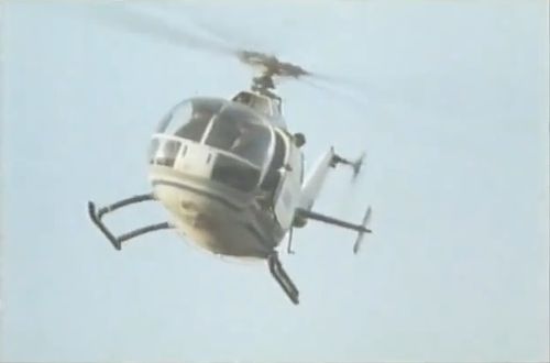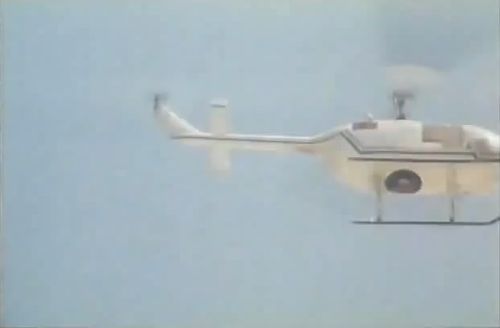 Visual error when the Bo 105 is exploding. Despite same colors and general shape, another air vehicle is used: two blades rotor instead the four blade of the real Bo 105; and what about this dark circle under the fuselage?