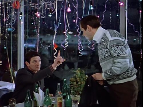 Lukashin en route to Leningrad falls asleep on his fellow passenger (played by director Eldar Ryazanov). This scene was also filmed inside Tu-114.