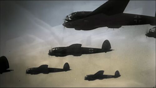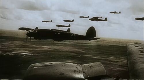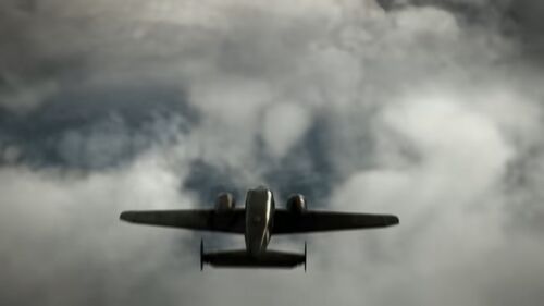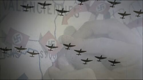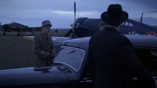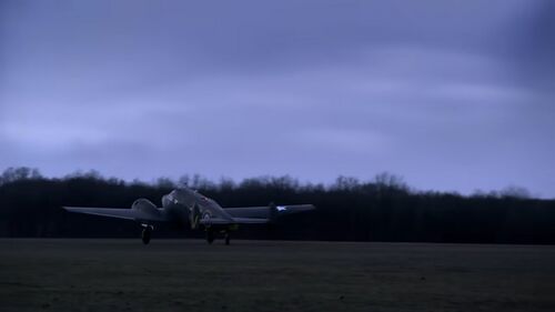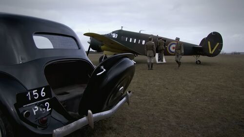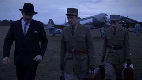 Fictitious event as the plane in which seated Spears and de Gaulle flew over La Rochelle and Rochefort then made a stopover in Jersey and arrived in London in the early afternoon. No attack by a German fighter plane en route, which was added by the editor and/or writter.