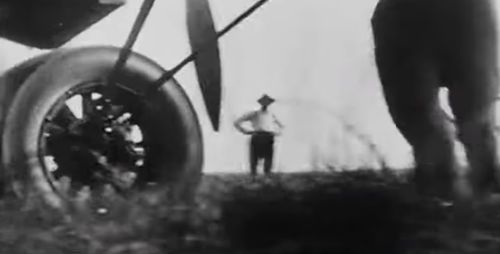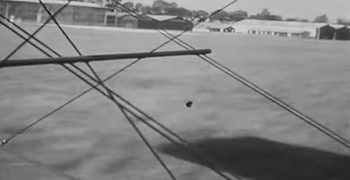 During takeoff, this shot is filmed from a Potez 25 showing the flying wires (two by two diagonally, linked by the horizontal strut) and the bracing wires (X seen left half of the picture).