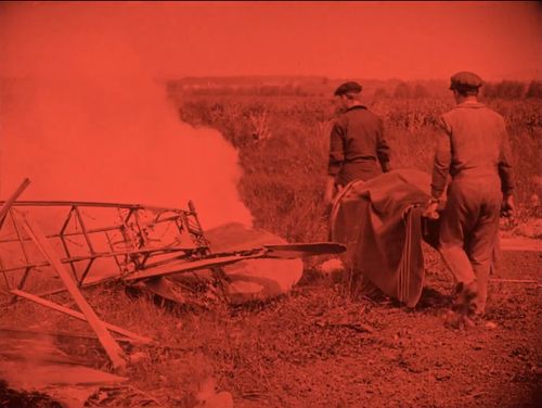 On the crash action, the Spad S.42 makes way to an aircraft made up of scattered subassemblies or from a derelic wreck fitted with what seems to be a Breguet Br. 14 main landing gear, itselfusing not the usual wheels but smaller ones.