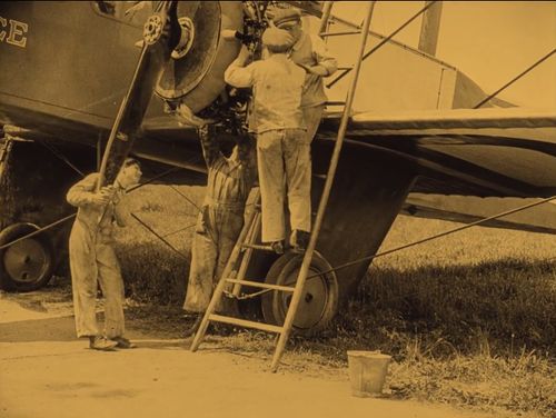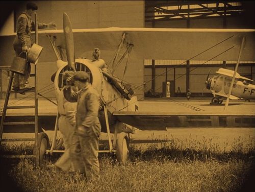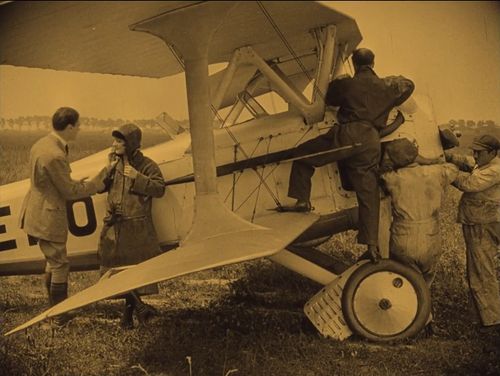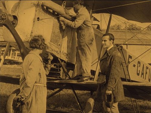 Diane (Mary Harald), jealous of Hélène's success, tries to sabotage her plane.