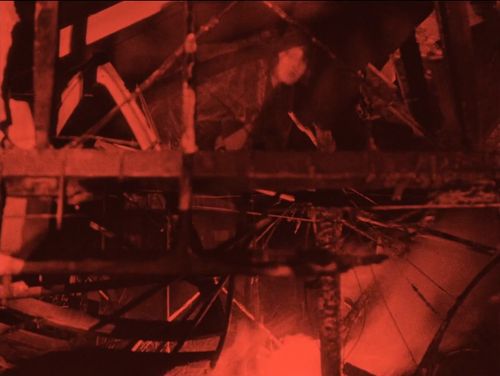 What seems to have been a two-seater (second seat on the right of the burning bay.