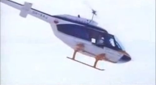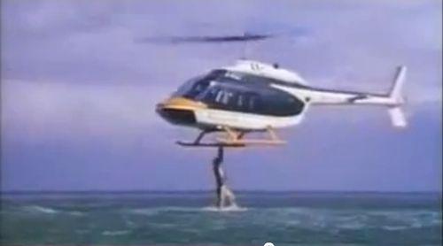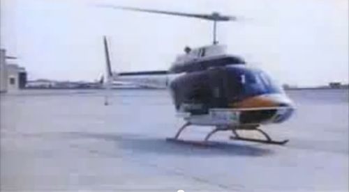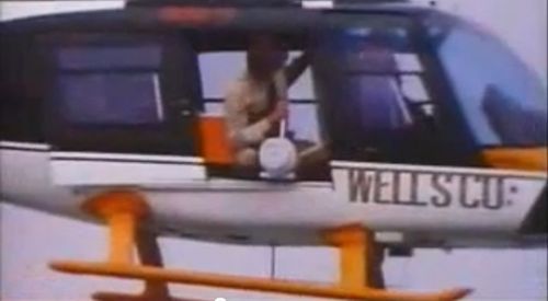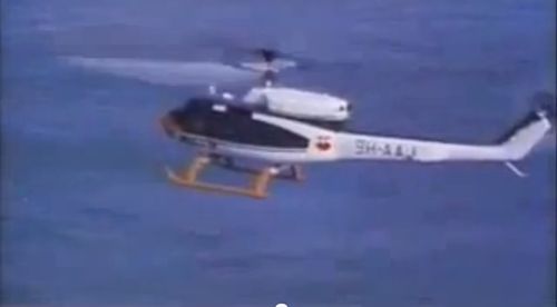 WellsCo helicopter. Used in an attempt to bait the shark with a hunk of meat on a winch. When the winch operator falls into the water with the shark, the pilot tries to save him by lowering the chopper down so he can grab the runner, but the shark bites off his legs.