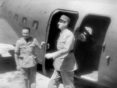 General C.de Gaulle arriving in Algeria to meet the General H. Giraud.