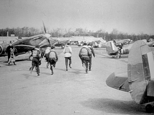 Retreat of British and French troops at Dunkerque in 1940. Shot from A Yank in the R.A.F..