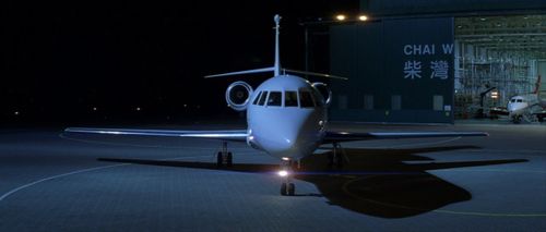 BAe 125s of the Royal Air Force in the hangar despite this being set at "Chain Wan Private Airport" (a fictional location) in Hong Kong. More likely filmed in the UK.