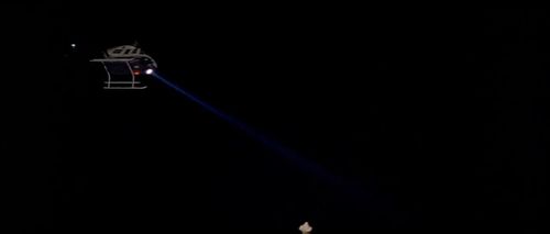 Police helicopter seen briefly when the Ripper is holding a group of schoolchildren hostage on a rooftop.