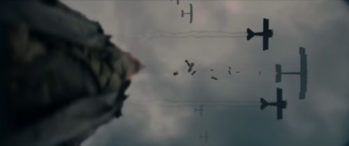 A Fokker Dr.I is seen seconds before flying low over the trenches on the Western front.