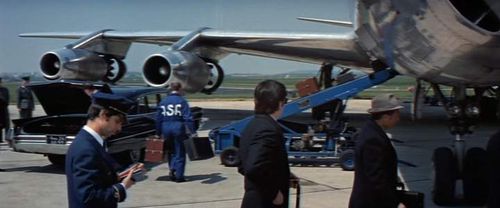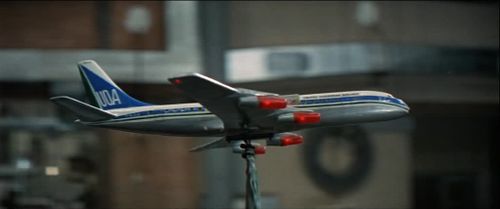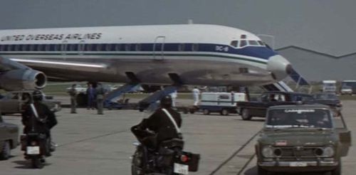 The aircraft is hijacked and lands on a speedway in the USA. It’s actually a fake “made for movie” company United Overseas Airlines, based on F-BJLA DC-8-33 of UTA-Union de Transports Aériens, which was written-off in 1973, due to sale to a foreign company.