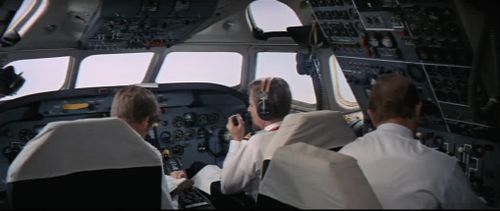 Unusual in the story of cinema, the cockpit is really this of a Douglas DC-8.