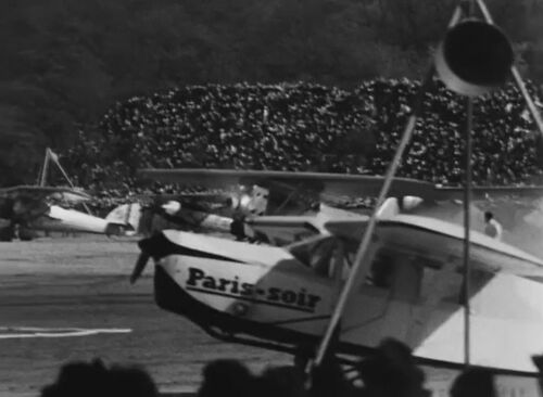 Aviation airshow is filmed during the Vincennes (close to Paris, France) airshow on 25 April 1937.