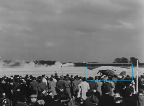 2 : unidentified high-wing plane, nearly hidden by Doret's takeoff;
