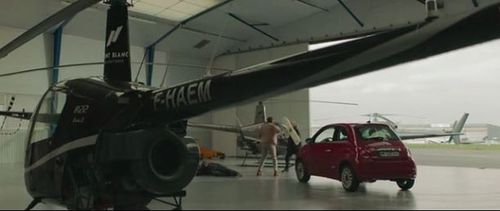 Seen outside the hangar in the background, this anonymous AS350 is then used by the two heroes. Despite the longest airial footage, the registration is kept unvisible !