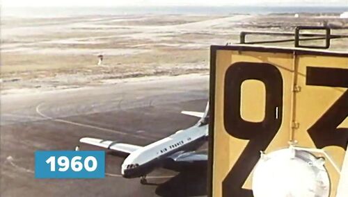 Could be at London Heathrow Airport (LHR) given the previous images suggesting the 8,000,000th Air France Caravelle passenger. See discussion tab (3). Therefore it's certainly not footage of 1960, rather around 1968 (exact date not found).
