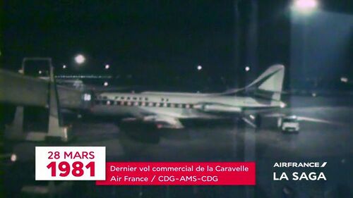 Last commercial flight of an AF's Caravelle on March 28th 1981, flight 917 from Amsterdam (AMS) arrived at 21h20 on the tarmac of Aéroport de Paris-Charles de Gaulle (CDG). See discussion tab (7).