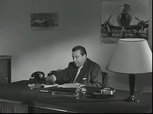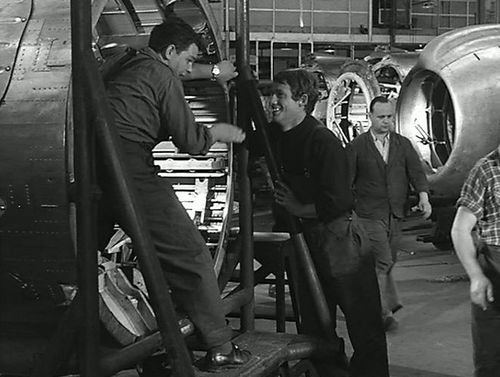 In the aircraft building company where the characters work. Probably in Air France maintenance hall, as we can see Lockheed Constellation's Wright R-3350 Turbo Compound engines on reparation work.
