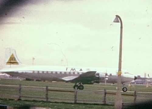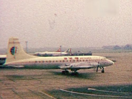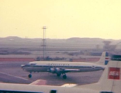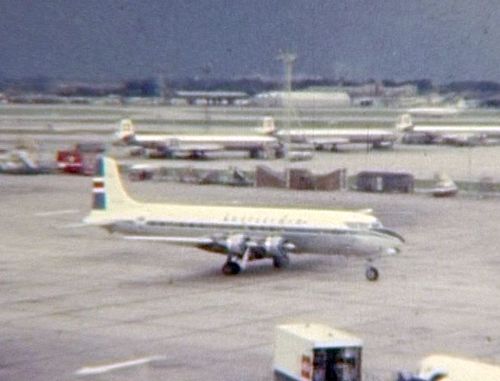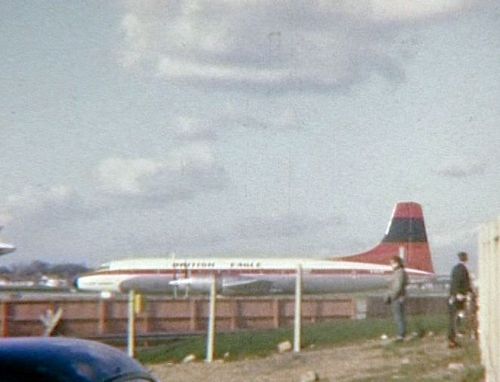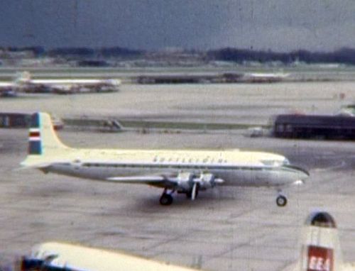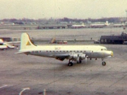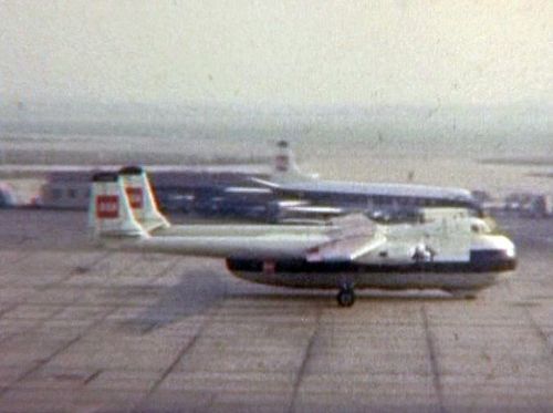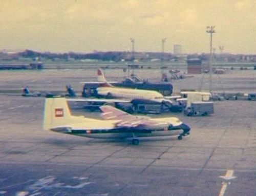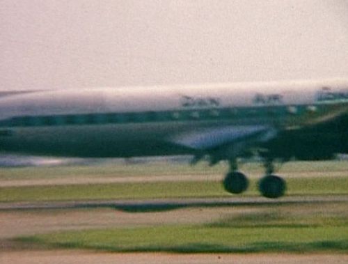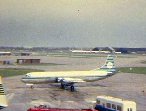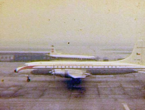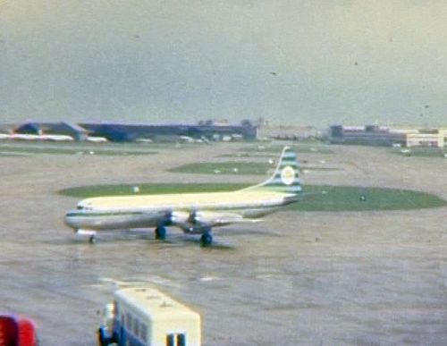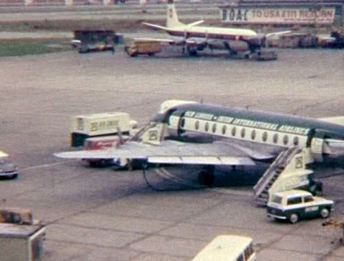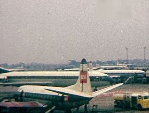 Highlights include BEA Herald, Lufthansa C46, Ghana, Swissair and MEA CV990s, the crashed TCA DC8, Aer Lingus Carvair, CSA and CPA Britannias, British Eagle and UAA DC6s. Alitalia, Dan Air and BOAC DC7s, UAA Caravelle.