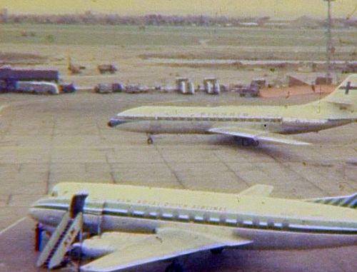 It seems we have two Alitalia's aircraft in the background, a Sud Aviation SE 210 Caravelle VI-N to the left beside a Douglas DC-8.