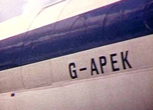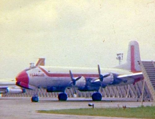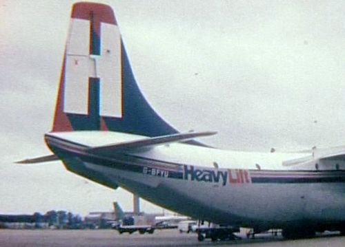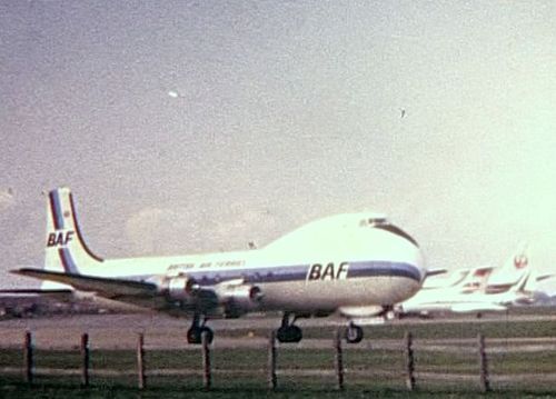 Good Fortune name worn by G-ARKA (1961-1969) and G-ARKB (1963-1969). The E is missing on the tail fin.