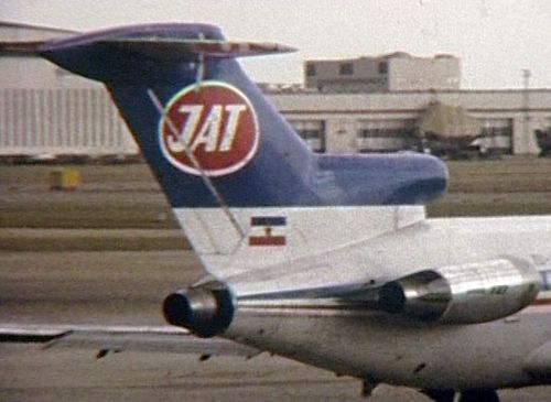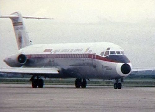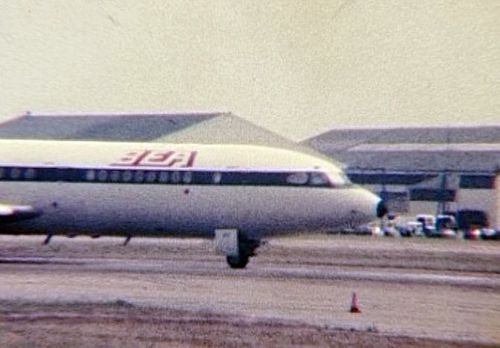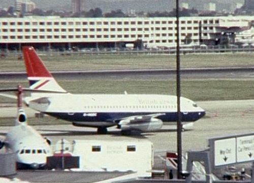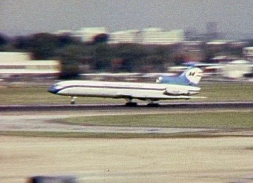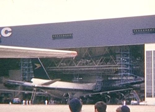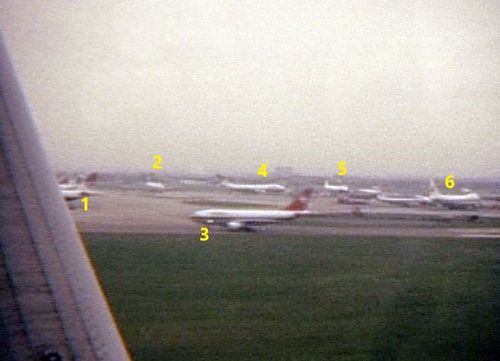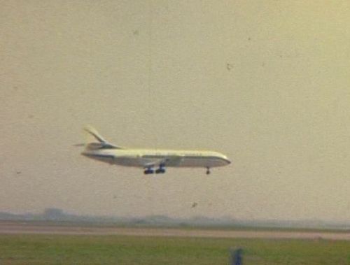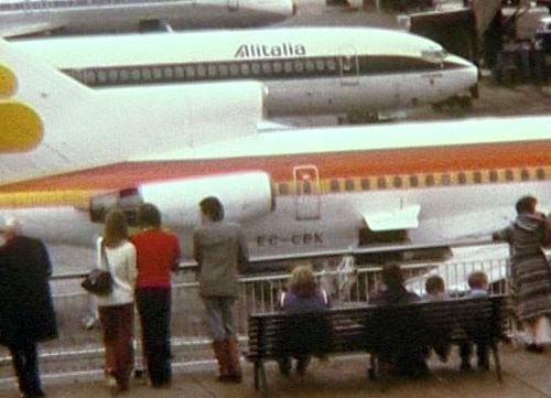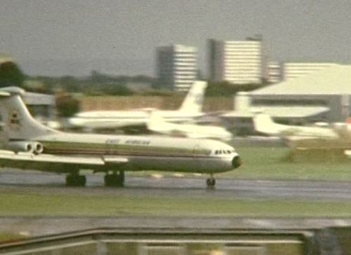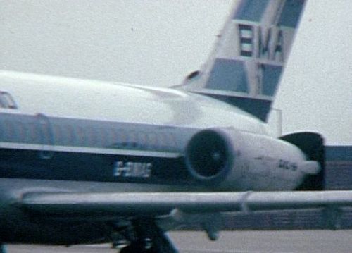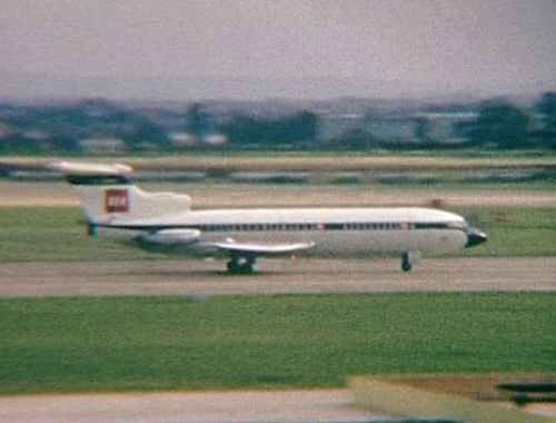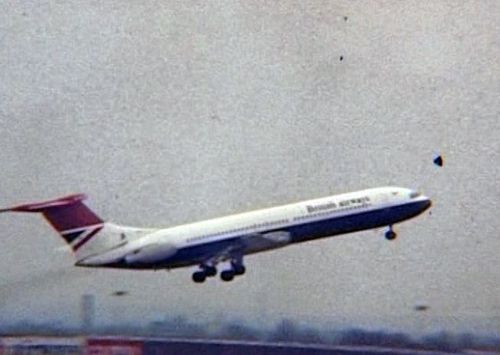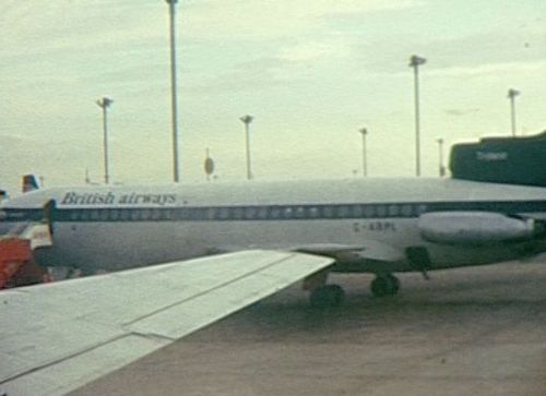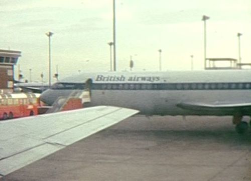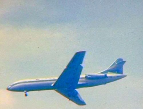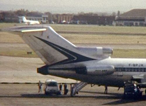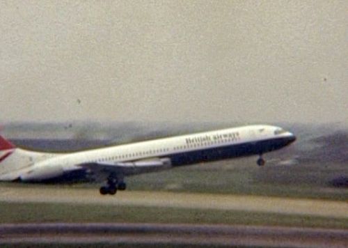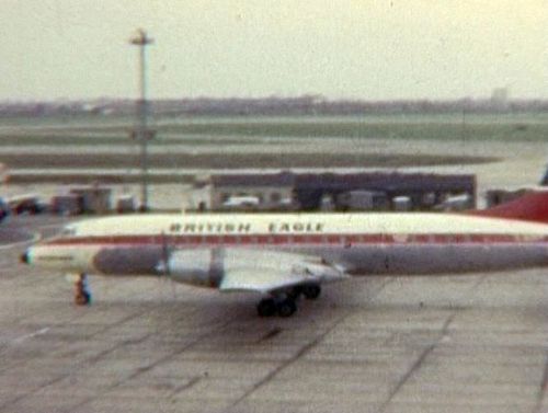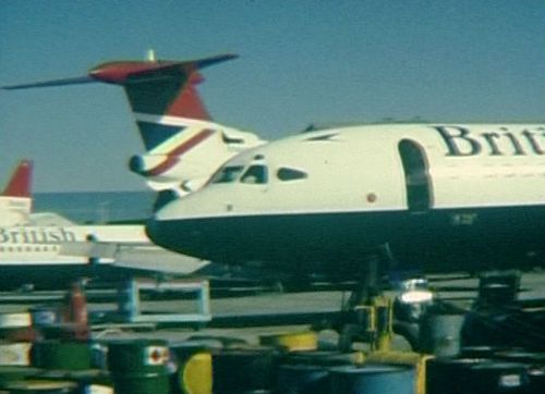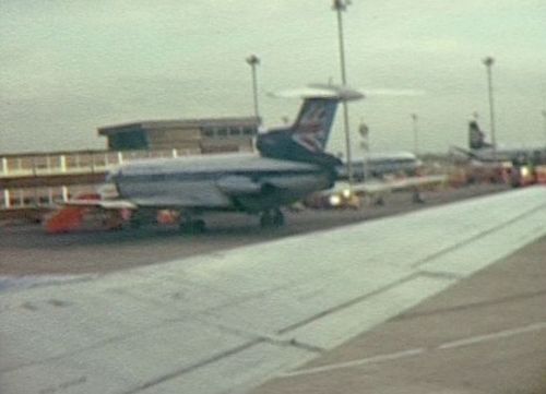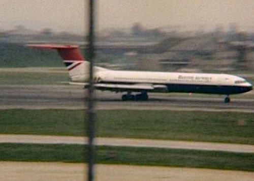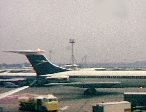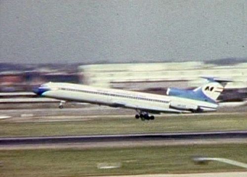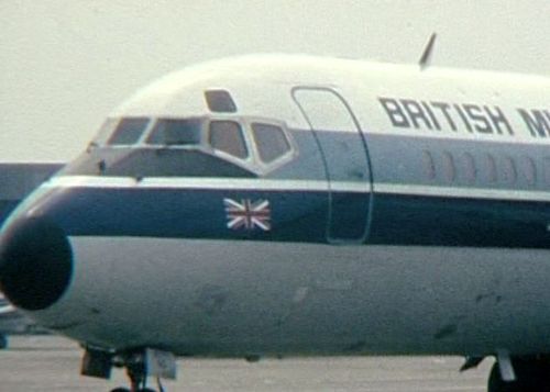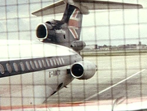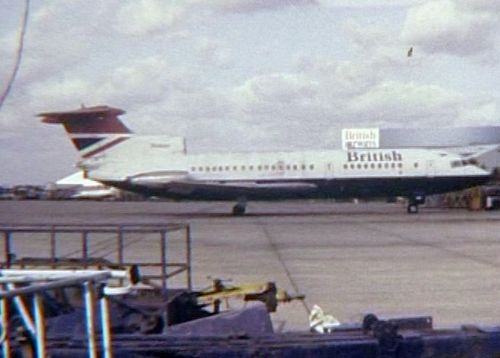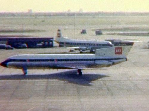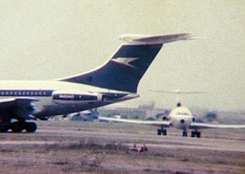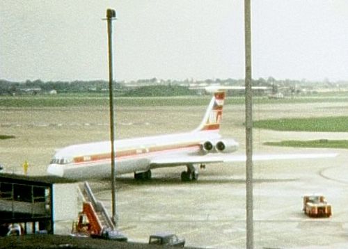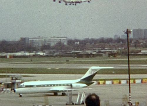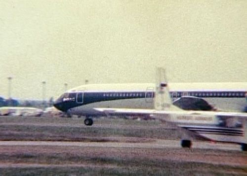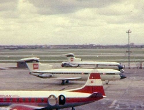 In the background, from left to right, Hawker Siddeley HS.121 Trident of BEA, McDonnell Douglas DC-9 and a BAC One-Eleven.
