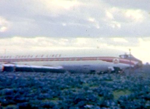 Registration CF-TJM, c/n 46653/178. Crash of Flight 861 on the 6 Nov 1963 at LHR substantially damaged in runway overshot after an aborted take-off. Same aircraft in other movies at IMPDb: Frequently Seen Aircraft.