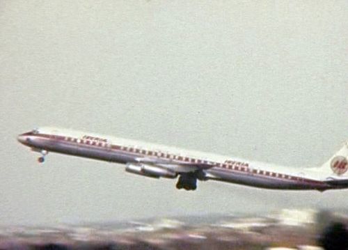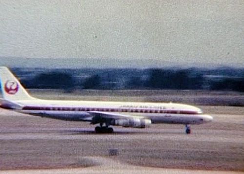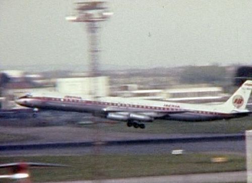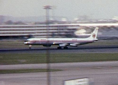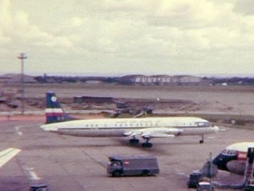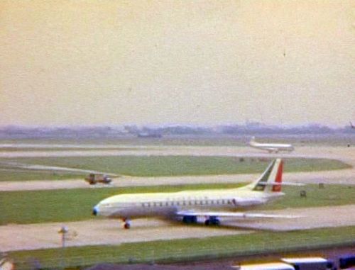 Seen again later on, a BEA 's Viscount has replaced the Alitalia's Caravelle in the background left beside the same Douglas DC-8.