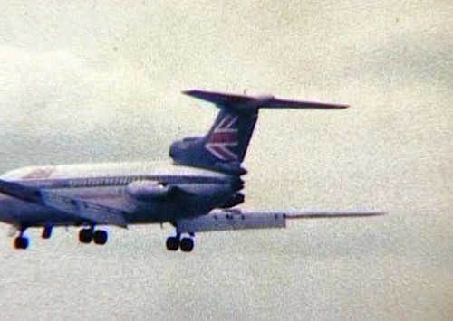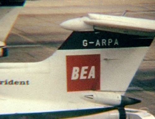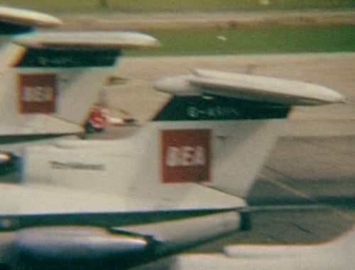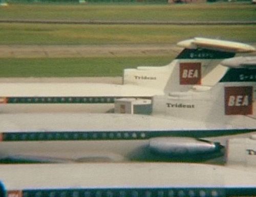 Hawker Siddeley HS.121 Trident 1C of BEA-British European Airways in the background.