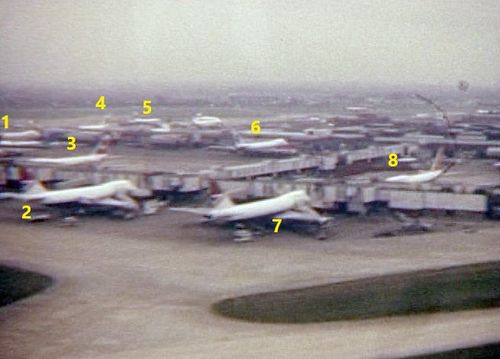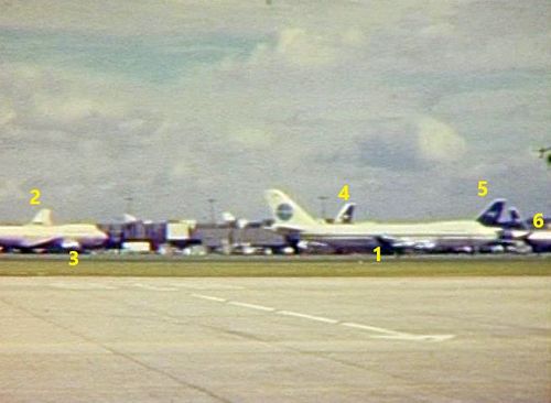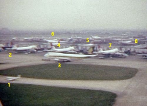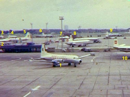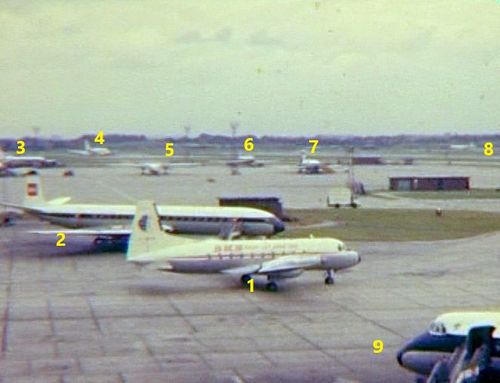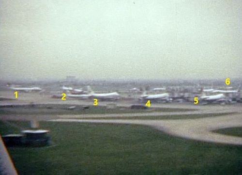 We start in the 1960s with Viscounts and 707s everywhere, alongside Caravelles, DC8s, Britannias, DC7s, Comets and TU104s. The earliest shot appears to be in 1963, with more from 1964.