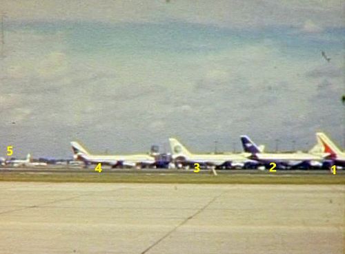 Highlights include Pan Am DC10 & 737, Northeast Trident, Merpati Vanguard, National 747, Libyan 727, SAA 747SP.