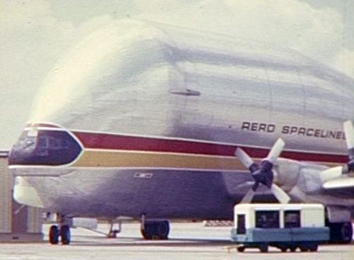 Two military Douglas C-124 Globemaster II parked in the background, and a quadrijet to the right.