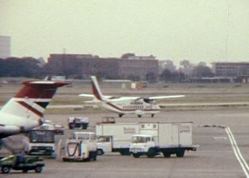 To the left background, unidentified Douglas DC-3 and Cambrians's Vickers Viscount.