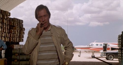 Arrives to fly Wilkes' stolen arms shipment from his Texas base to his hacienda in Mexico.