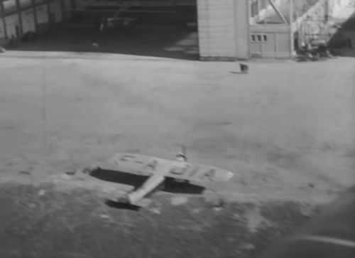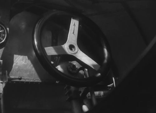 With the plane in disarray, the hero takes the controls and uses the rudder pedal.