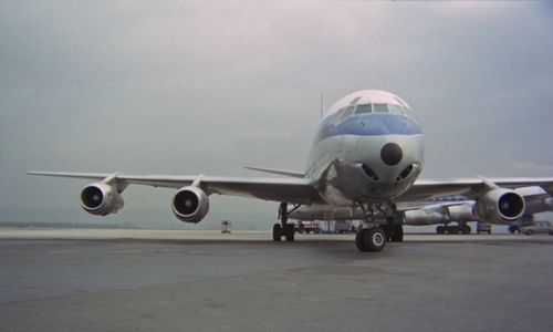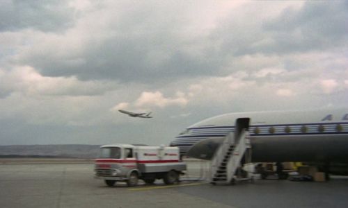 Madrid–Barajas Airport (MAD/LEMD). Caravelle of Alitalia in the foreground with a 707 of Air France taking off in the background.