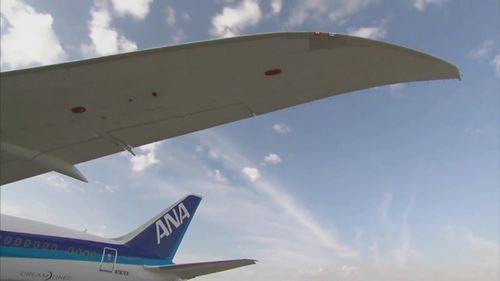 Boeing 787 arrives at Farnborough Air Show 2010.