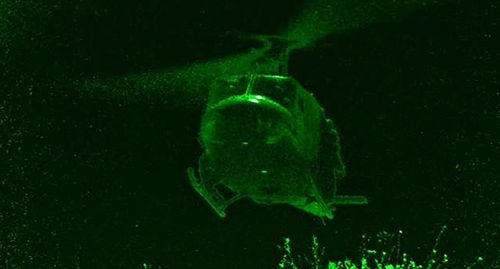 Night Vision view of a Huey in Episode 22.