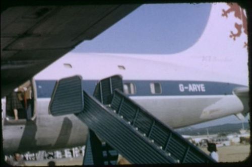 Apparently an ex-Army Dakota in 1958 on holiday flight from London to Corsica (via Lyons for refueling stop).