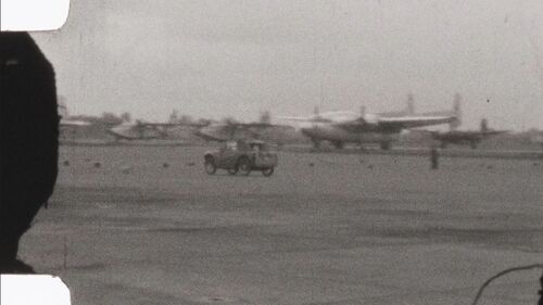 (Left to right) Grumman HU-16 Albatross, Fairchild C-119 Flying Boxcar and a dark Douglas A-26 Invader.