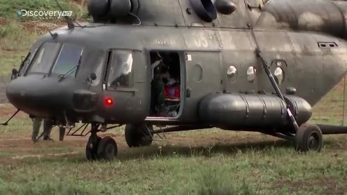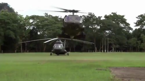 Mil Mi-17-V5 behind a Sikorsky S-70A taking off.