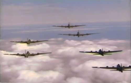 Only Boeing B-17G s/n 44-85784 reg. G-BEDF was used for filming. Built in 1945 and actually usually known as Sally B, she was adorn with the serial of the real Memphis Belle (41-24485) (please note that this aircraft is seen in other movies; read it at IMPDb: Frequently Seen Aircraft (Military Fixed-Wing), G-BEDF section).