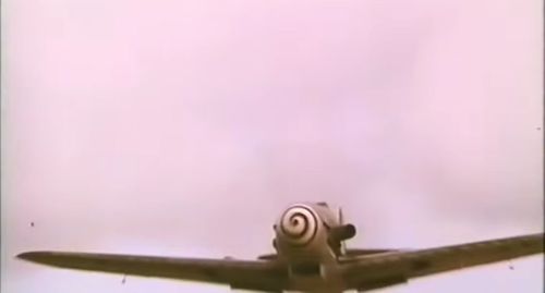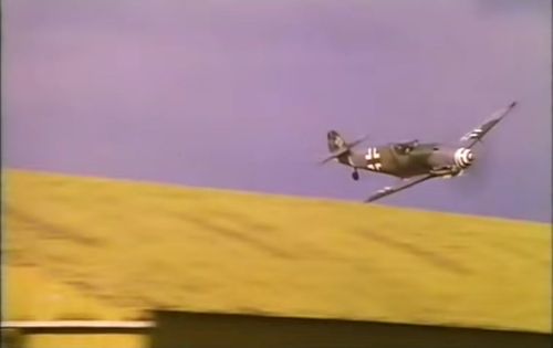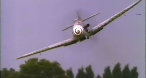 Messerschmitt Bf-109G-2, G-USTV, c/n 10639 aka Black 6 (with Sqn Ldr Dave Southwood at the controls) is only seen on this front shot due to her desert paint sheme unsuitable for action over East Anglia !