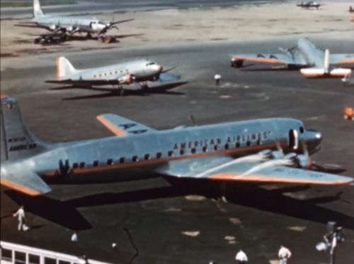 In the background, 2 Douglas DC-3 of American Airlines and another unidentified airline Douglas DC-6 in the far.