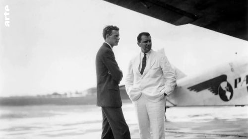 J.T.Frippe and C.Lindberg in front of one of the 11 Ford Trimotors operated by PAA System.