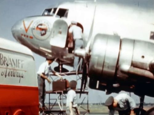 With colours of Braniff International Airways, another competitor of PAA, on South American lines after war.